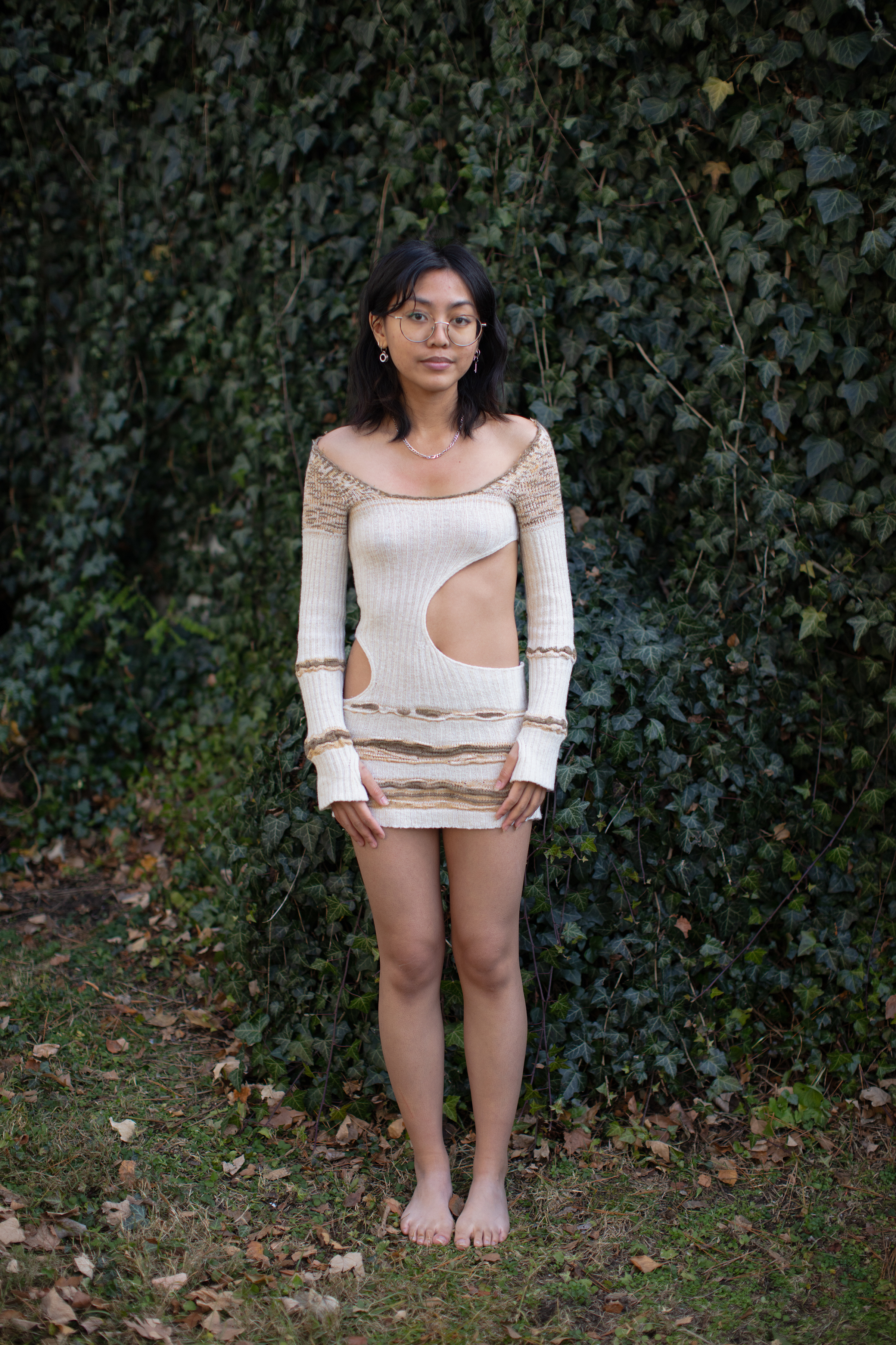upcycled curtain dress, garden